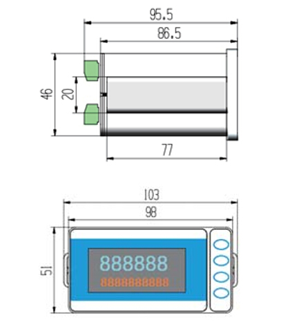 • 顯示按鍵:雙排段碼顯示,4 按鍵操作。